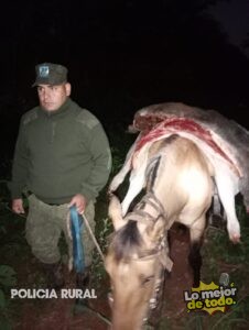 A raíz de ello, se dispuso vigilancia a cargo del Of. Ppal. Toledo y Cbo. Meza, quienes, cerca de las 19:25 hs, hallaron a dos sujetos con un equino cargado con restos vacunos. Al impartir la voz de alto, los individuos efectuaron disparos hacia los policías rurales siendo repelidos por los uniformados.