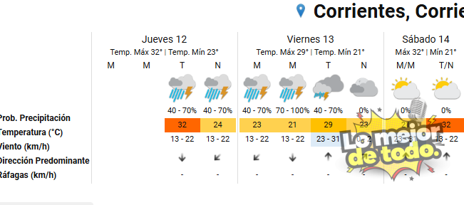 Un informe del Servicio Meteorológico Nacional (SMN), advierte sobre la posibilidad de tormentas y lluvias intensas con grandes acumulados en distintas localidades de la provincia de Corrientes. Para este jueves es amarilla y el viernes naranja.