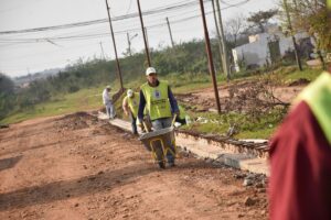 El proyecto vial, que se encuentra en plena ejecución por estos días, busca mejorar la infraestructura urbana y embellecer el entorno comunitario, con la instalación de 2.806 metros lineales de cordón cuneta, logrando de esa manera una correcta delimitación y un drenaje adecuado.
