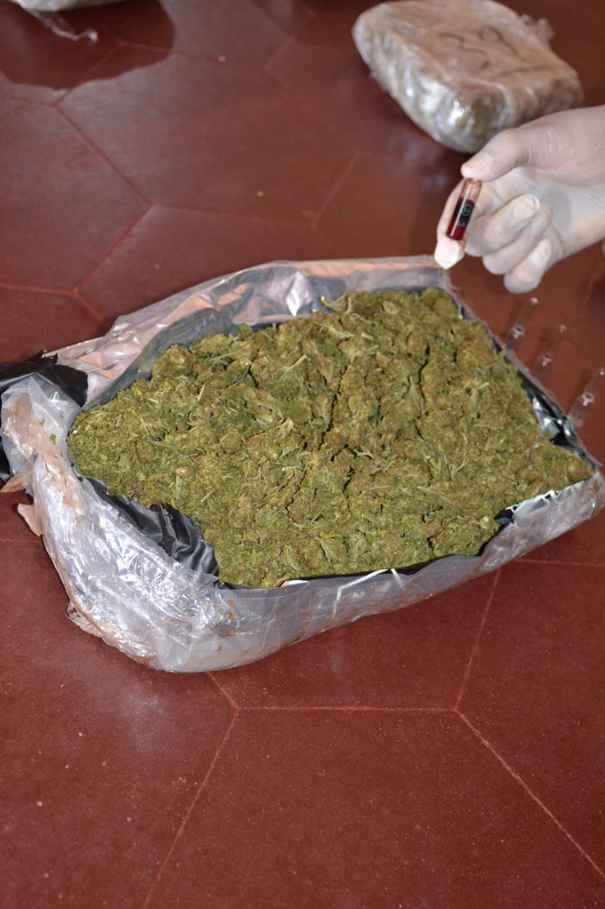 El personal de Criminalística y Estudios Forenses realizó las pruebas de campo Narcotest y confirmó que se trataba de “cannabis sativa”, arrojando un total de 20 kilos 297 gramos.