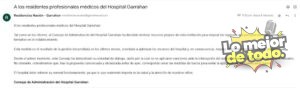 Correo enviado por el Consejo de la Administración del Hospital Garrahan a los médicos residentes