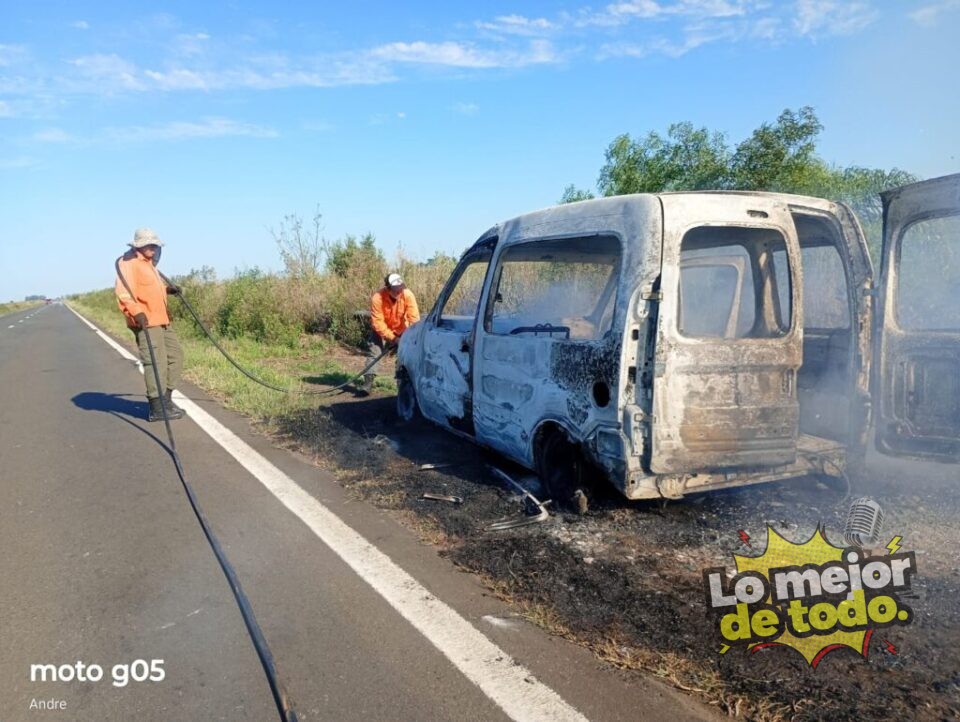 SANTO TOME. En horas de la tarde de este viernes, un automóvil Marca Renault modelo Kangoo que circulaba por Ruta Nacional 14, se prendió fuego totalmente y en cuestión de pocos minutos, el fuego lo redujo a cenizas. El vehículo provenía desde el conurbano bonaerense con destino a la ciudad misionera de Esperanza. Afortunadamente no hubo personas lesionadas, solo daños materiales en el rodado que quedó destruido por completo. Intervino en las actuaciones, personal de la Comisaria Segunda de esta ciudad.